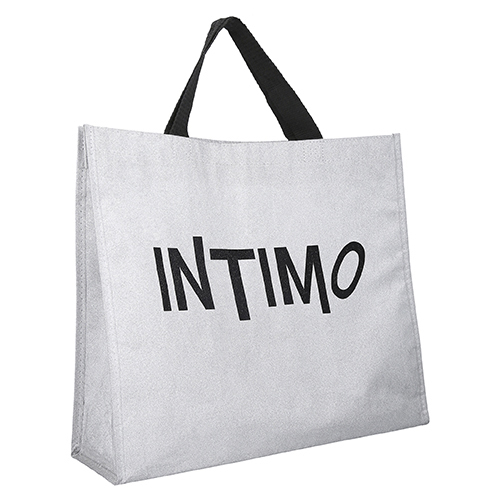 Bolsa ecológica de acabado glitter y asa de poliéster.